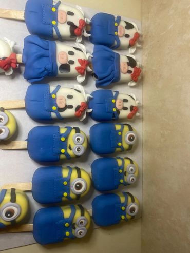 You can choose 25 of any 4 of our standard decorated treats from the "bites" section of the menu. Or choose a 2 layer 8" cake with 75 mix and match treats.